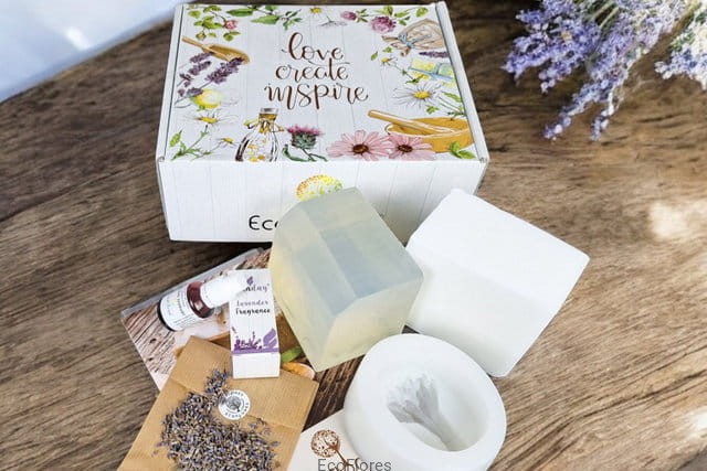 Zestaw startowy do samodzielnego wykonania mydełek z bazy glicerynowej.