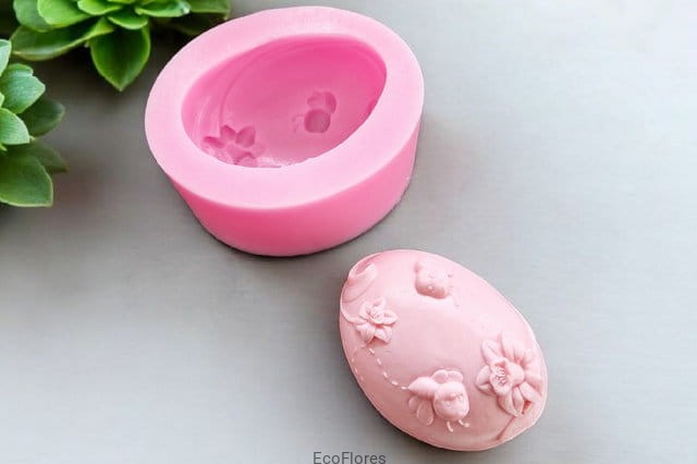Foremka silikonowa wykonana z trwałego, elastycznego silikonu do wykonywania odlewów z bazy mydlanej, odlewów świec oraz odlewów z gipsu.