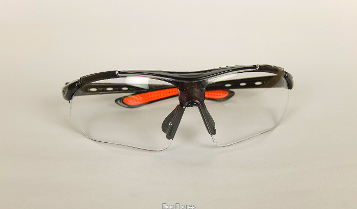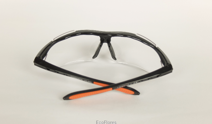 Proste, funkcjonalne okulary ochronne, wykonane z tworzywa.