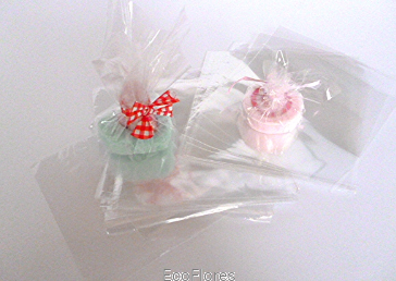Woreczki wykonane ze sztywnego, wytrzymałego celofanu.